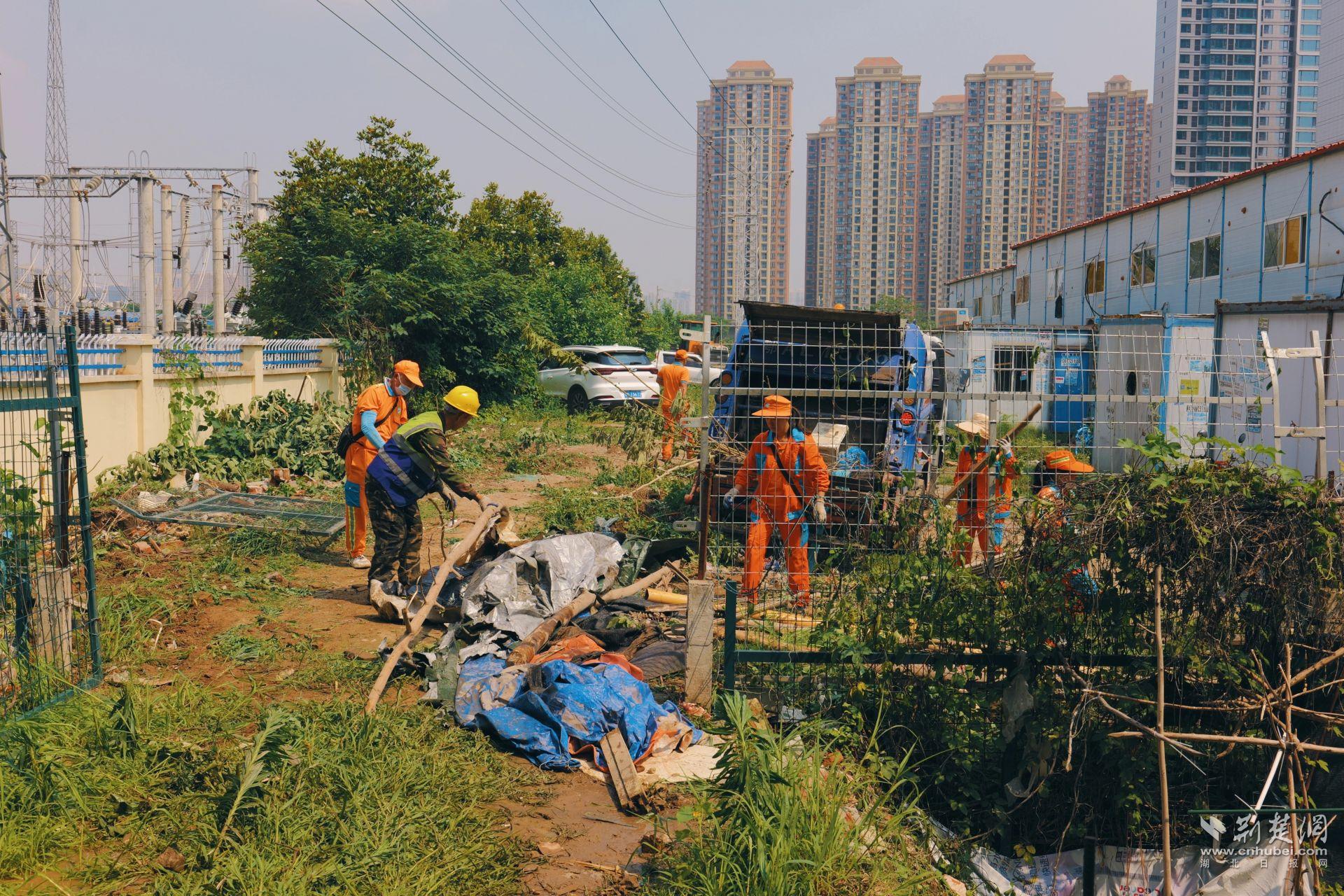 在區(qū)城管局牽頭動員下,執(zhí)法人員、環(huán)衛(wèi)力量聯(lián)合新村街道的干部職工、社區(qū)工作人員及武漢高鐵工務段技術人員以及公安干警們,共同組成200余人的攻堅隊伍,同時調度3臺大型挖掘機和4輛垃圾清運車,對鐵路橋下約3200平方米的“臟亂差”區(qū)域展開了拉網(wǎng)式清理。
