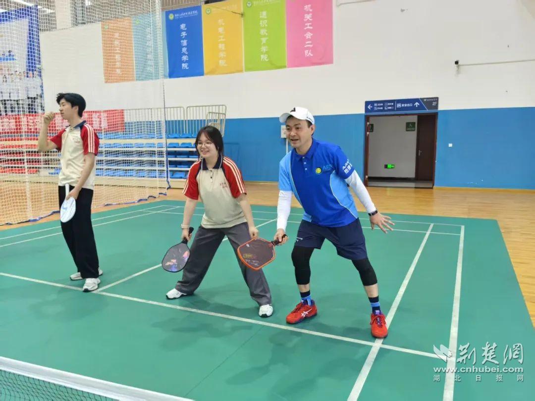 黃緯纮在宜昌三峽技術學院做師生匹克球推廣。通訊員供圖