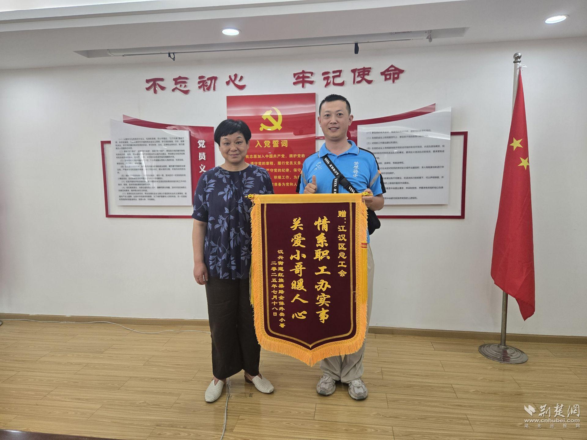 這份特別的“夏日回禮”,由外賣騎手張寶劍代表站點(diǎn)小哥們送上,他們用質(zhì)樸的方式表達(dá)感謝,也為江漢區(qū)總工會(huì)“夏送清涼”品牌服務(wù)注入了一份真摯回應(yīng)。
