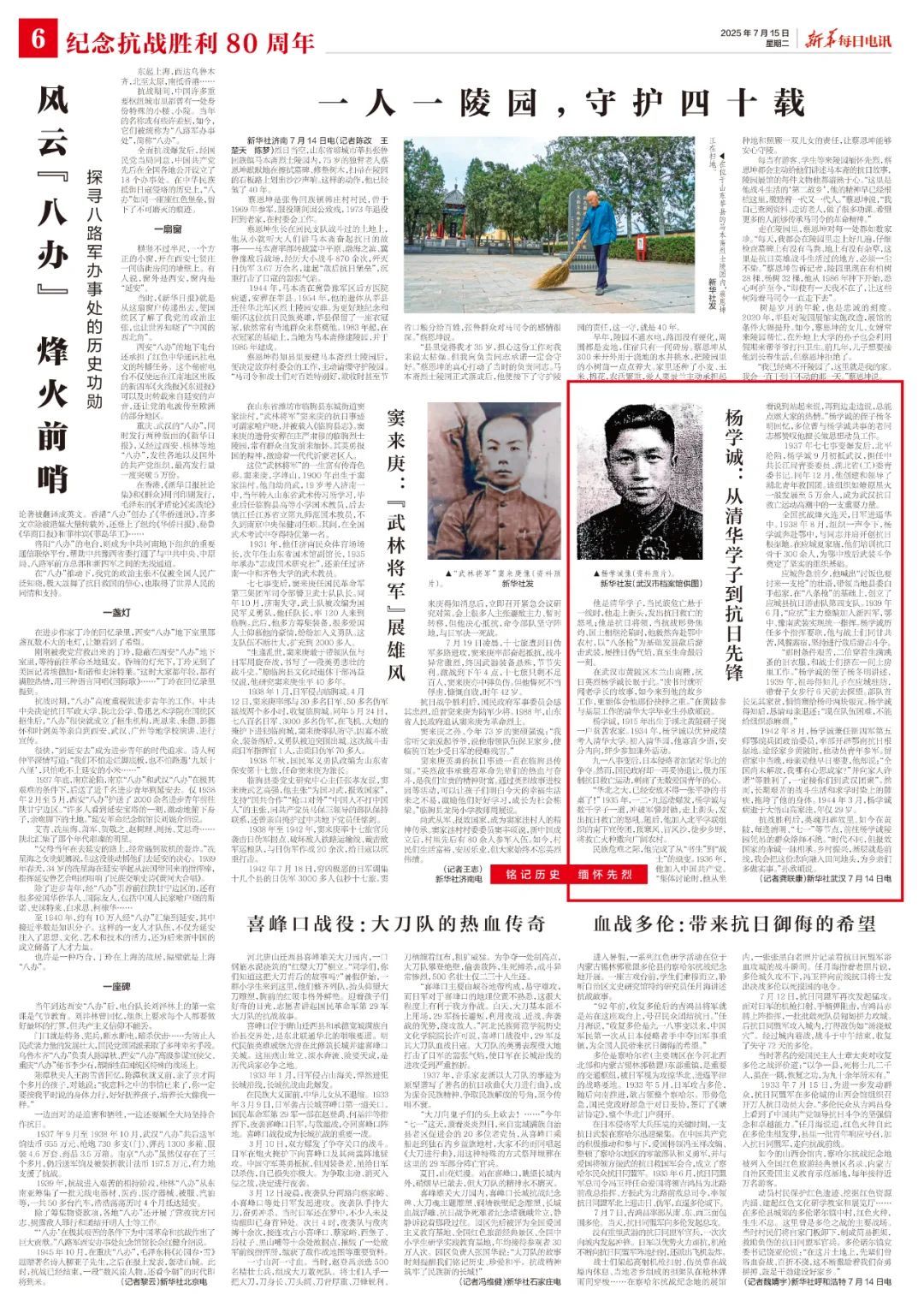 抗戰(zhàn)勝利后,英魂歸葬故里。如今在黃陂,每逢清明、“七一”等節(jié)點,前往楊學(xué)誠陵園憑吊的群眾絡(luò)繹不絕?!皶r代不同,但報效國家的赤誠一脈相承。鄉(xiāng)村振興,基層就是前線,我會把這份志向融入田間地頭,為鄉(xiāng)親們多做實事?!睂O欣頔說。