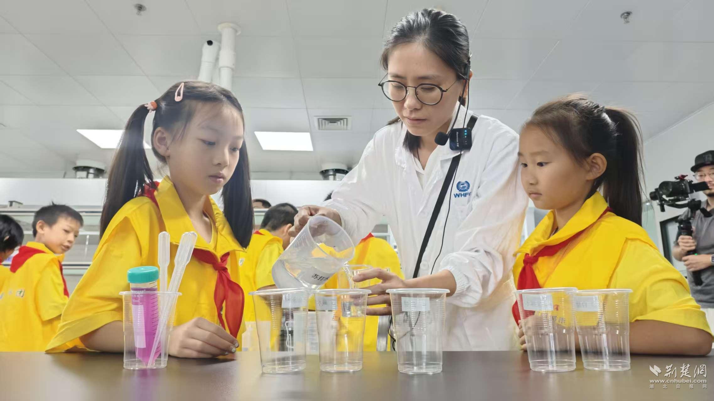 “小黃鶴觀察團”的觀察員們在武漢食品化妝品檢驗所科普基地展廳,通過“聲、光、電”科技和多媒體技術,沉浸式學習食品安全檢驗檢測和營養(yǎng)衛(wèi)生方面的科普知識。