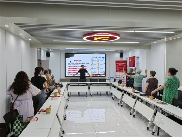 隨后,醫(yī)師帶領(lǐng)居民們學(xué)習(xí)傳統(tǒng)養(yǎng)生功法“八段錦”。伴隨著舒緩的口令,大家認(rèn)真練習(xí)“雙手托天理三焦”“左右開弓似射雕”等動(dòng)作,體驗(yàn)中國(guó)傳統(tǒng)運(yùn)動(dòng)在調(diào)理氣血、舒緩壓力方面的功效。