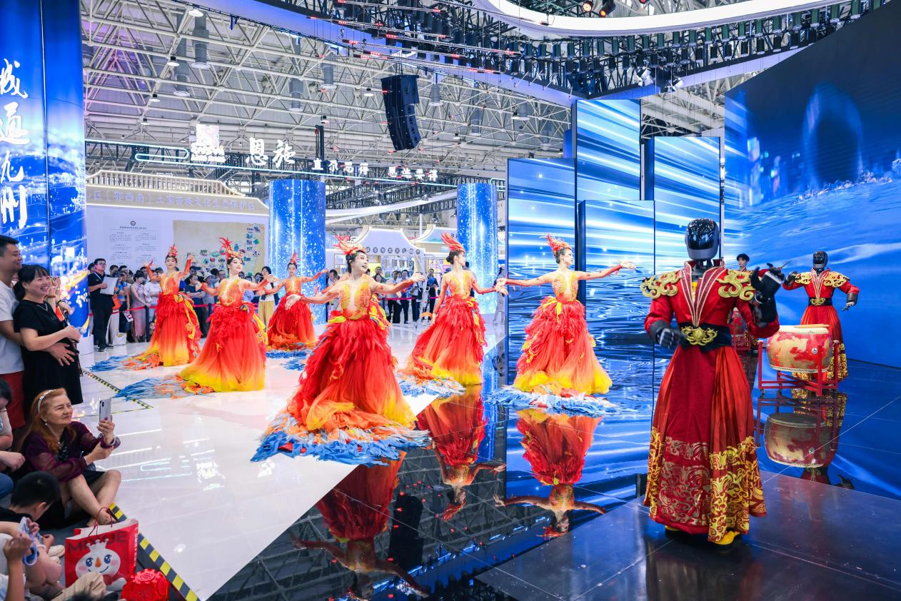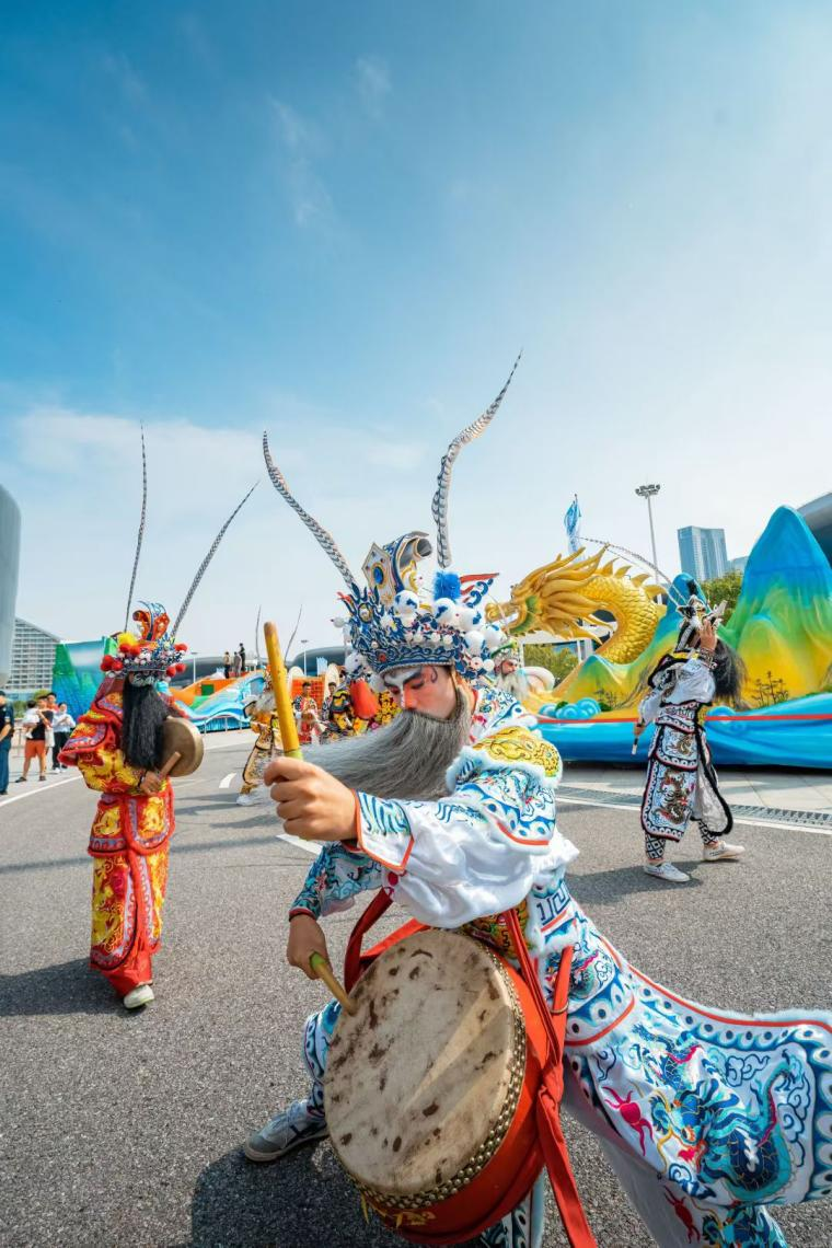 在展館內(nèi)外可以看到,各展區(qū)人頭攢動(dòng),在廣東長(zhǎng)隆展區(qū),兩點(diǎn)半的演出還沒(méi)開始,人流已經(jīng)里三層外三層打圍。伴著強(qiáng)勁律動(dòng),外籍演員們還邀請(qǐng)觀眾共舞互動(dòng),現(xiàn)場(chǎng)氣氛爆棚。展館內(nèi)部,韓國(guó)館、陜西館等展位的熱舞、非遺展演成了焦點(diǎn)。多種多樣的智能設(shè)備體驗(yàn)等,更成為小朋友的樂(lè)園。