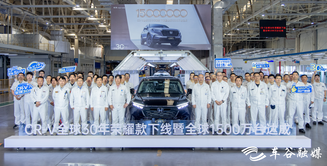 9月15日11時40許,在位于武漢經(jīng)開區(qū)的東風(fēng)本田第三工廠總裝車間,一輛東風(fēng)本田CR-V全球30年榮耀款緩緩駛下生產(chǎn)線。同日,CR-V全球累計銷量突破1500萬臺,成為全球最受歡迎的家用SUV之一。