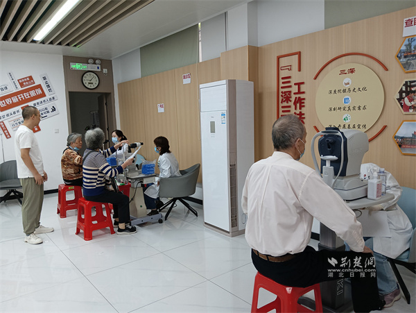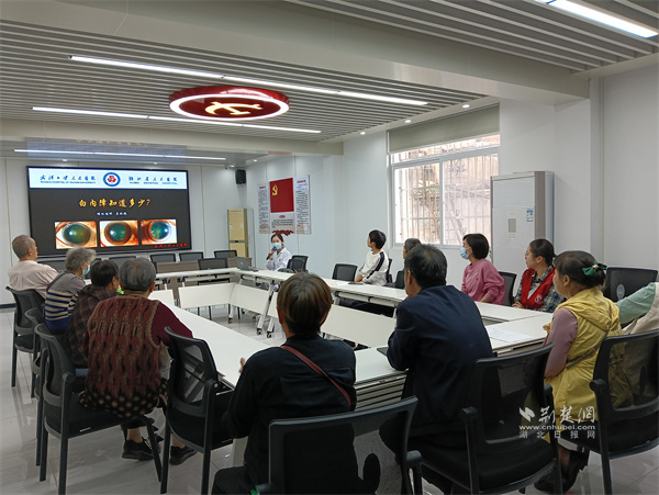 活動當天,社區(qū)黨群服務中心設立了臨時義診服務點。武漢大學人民醫(yī)院眼科醫(yī)護團隊為居民提供了包括視力檢查、眼壓測量、??漆t(yī)生問診等一系列專業(yè)診療服務。社區(qū)基層黨員和志愿者積極配合,有序引導居民排隊、協(xié)助信息登記、耐心解答疑問,保障了現(xiàn)場流程順暢、秩序井然。
