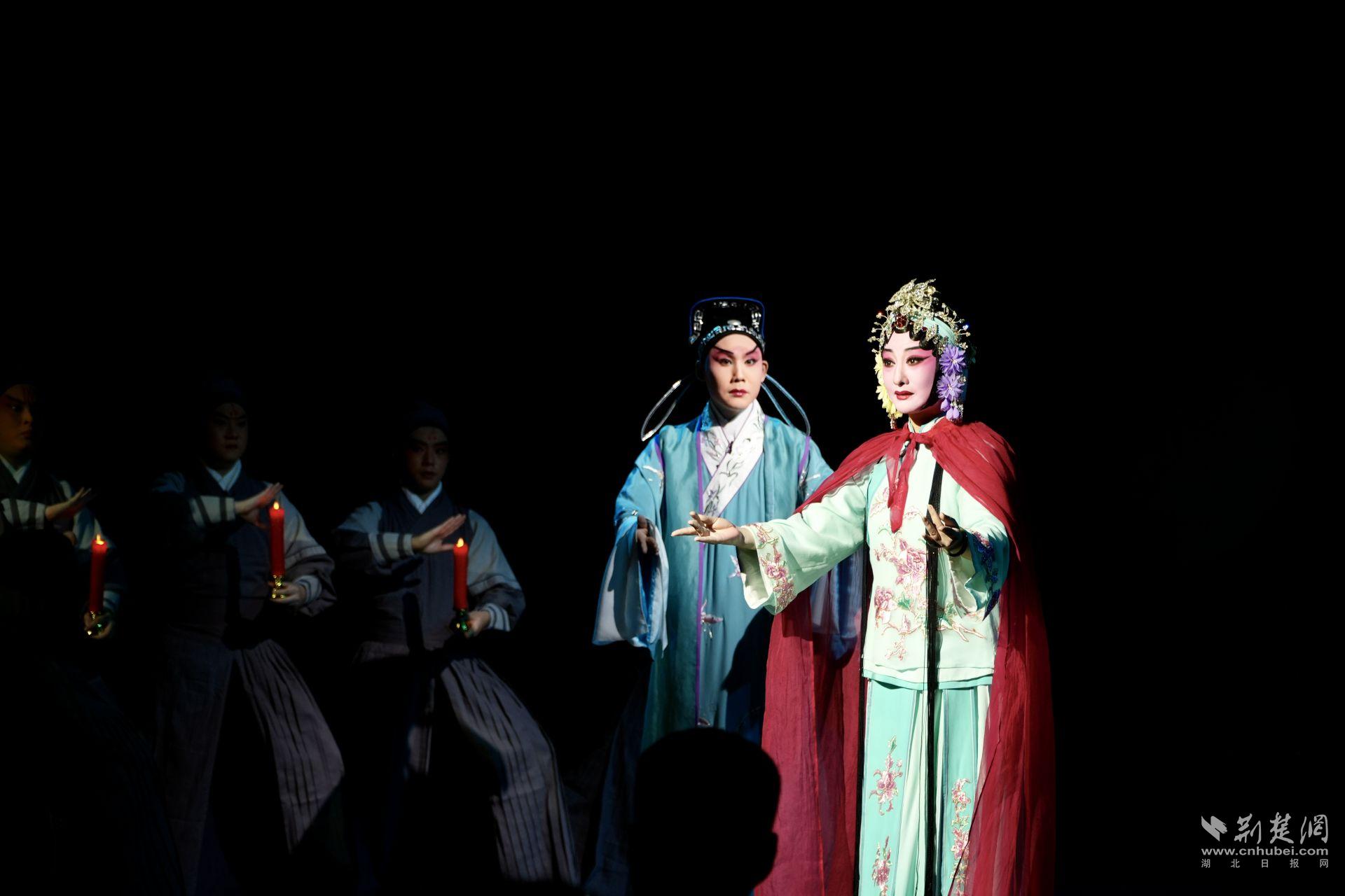 隨后,小劇場(chǎng)純享版京劇《命定·烏龍?jiān)骸肪书_演。茶座式觀演模式讓觀眾一邊欣賞唱念做打的絕活,一邊品味武漢老字號(hào)糕點(diǎn)。傳統(tǒng)藝術(shù)與地道風(fēng)味交織,帶來(lái)別具一格的沉浸體驗(yàn)。