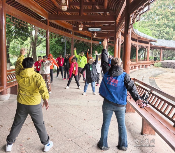 抵達(dá)公園后,全體人員在指導(dǎo)下進(jìn)行熱身操活動。簡單的互動游戲不僅驅(qū)散了清晨的涼意,也進(jìn)一步調(diào)動了參與者的積極性,為后續(xù)游覽營造了輕松愉快的氛圍。