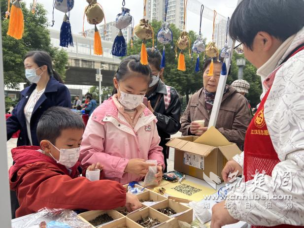 體驗區(qū)里,社工帶領(lǐng)孩子們動手制作茱萸香囊,講述“佩茱萸祈福避災(zāi)”的古老風俗。孩子們捧著親手做好的香囊,迫不及待地想送給家里的長輩。公益集市的人氣更是高漲,非遺絨花攤位展示傳統(tǒng)之美,慈善義賣匯聚鄰里愛心,植物醫(yī)生攤位傳遞健康養(yǎng)生理念。