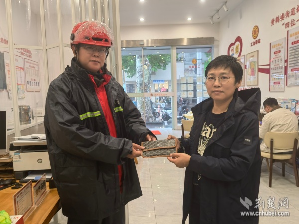 當(dāng)日下午,陳智在執(zhí)行配送任務(wù)時,于路邊發(fā)現(xiàn)一遺失錢包,內(nèi)有現(xiàn)金、身份證、銀行卡等重要物品。考慮到失主必定心急如焚,他立即暫停配送工作,將錢包送至就近的黃鶴樓街道新就業(yè)群體服務(wù)驛站,希望通過驛站平臺盡快物歸原主。