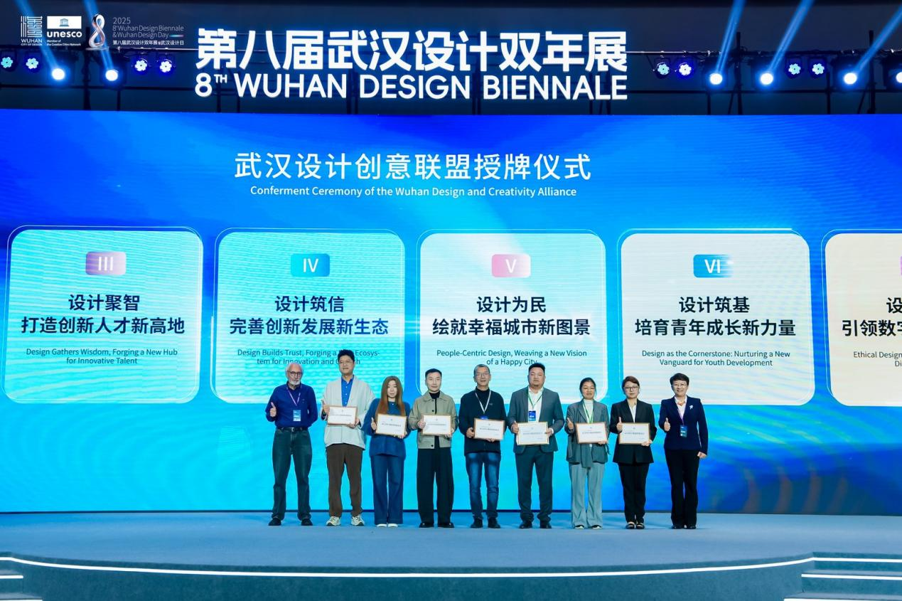 武漢有設(shè)計(jì)相關(guān)專業(yè)高校50余所,設(shè)計(jì)專業(yè)在校學(xué)生近10萬(wàn)人,設(shè)計(jì)相關(guān)企業(yè)突破1萬(wàn)家,10余個(gè)設(shè)計(jì)行業(yè)協(xié)會(huì),從業(yè)人員超50萬(wàn),形成了強(qiáng)大的“設(shè)計(jì)創(chuàng)意聯(lián)盟”,催生出了集產(chǎn)業(yè)鏈、創(chuàng)新鏈、人才鏈、價(jià)值鏈于一體的融合創(chuàng)新發(fā)展生態(tài)體系。在開幕式的最后,“武漢設(shè)計(jì)創(chuàng)意聯(lián)盟”正式授牌,來(lái)自設(shè)計(jì)企業(yè)、行業(yè)協(xié)會(huì)、高校院所和獨(dú)立設(shè)計(jì)師等領(lǐng)域多元設(shè)計(jì)力量代表共同見證。未來(lái),“武漢設(shè)計(jì)創(chuàng)意聯(lián)盟”將奮力實(shí)現(xiàn)設(shè)計(jì)融城,構(gòu)筑協(xié)同發(fā)展新范式;設(shè)計(jì)賦能,激活產(chǎn)業(yè)升級(jí)新動(dòng)能;設(shè)計(jì)聚智,打造創(chuàng)新人才新高地;設(shè)計(jì)筑信,完善創(chuàng)新發(fā)展新生態(tài);設(shè)計(jì)為民,繪就幸福城市新圖景;設(shè)計(jì)筑基,培育青年成長(zhǎng)新力量;設(shè)計(jì)向善,引領(lǐng)數(shù)字文明新航向;設(shè)計(jì)聯(lián)通,拓展國(guó)際交往新空間八大目標(biāo)。