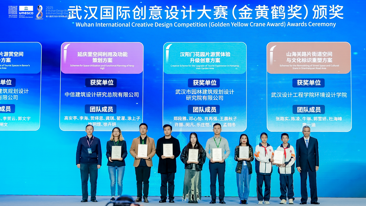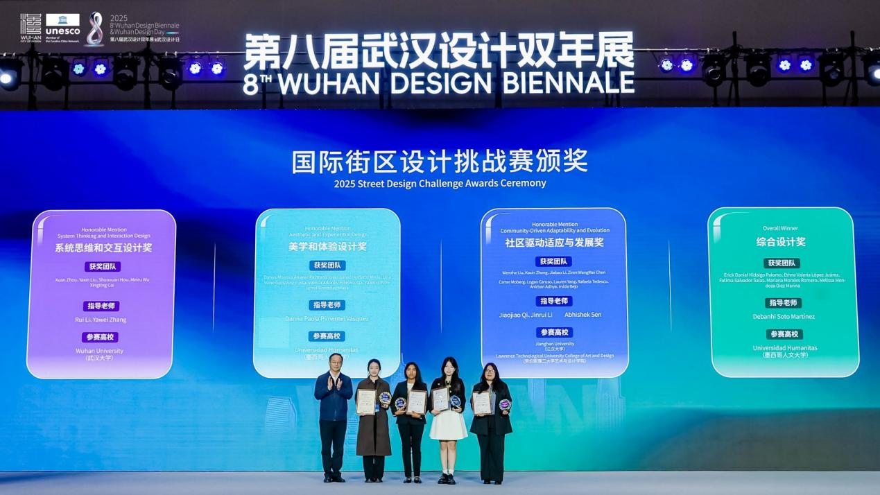 開幕式上,2025年武漢國(guó)際創(chuàng)意設(shè)計(jì)大賽(金黃鶴獎(jiǎng))與 2025年國(guó)際街區(qū)挑戰(zhàn)賽頒獎(jiǎng)儀式同步舉行。其中,象征武漢設(shè)計(jì)創(chuàng)新探索的“金黃鶴獎(jiǎng)”,今年特意選取黃鶴樓、山海關(guān)路、漢陽(yáng)門等市民常去、關(guān)注度高、滿滿煙火氣的城市地標(biāo)作為設(shè)計(jì)對(duì)象,不限專業(yè)和地域,征集更宜人的更新提升方案?,F(xiàn)場(chǎng),武漢瑞拓建筑設(shè)計(jì)咨詢有限公司等6個(gè)專業(yè)組一等獎(jiǎng)和最佳組織獎(jiǎng)武漢市七一華源中學(xué)等獲獎(jiǎng)代表接受頒獎(jiǎng)。國(guó)際街區(qū)挑戰(zhàn)賽,則是由聯(lián)合國(guó)教科文組織設(shè)計(jì)之都城市聯(lián)合舉辦,全球高校團(tuán)隊(duì)共同參與的國(guó)際設(shè)計(jì)賽事。經(jīng)過(guò)全球30位權(quán)威專家1個(gè)月的精心細(xì)致評(píng)審,選出了四個(gè)優(yōu)勝方案?,F(xiàn)場(chǎng),為交互設(shè)計(jì)獎(jiǎng)獲獎(jiǎng)團(tuán)隊(duì)武漢大學(xué)、美學(xué)設(shè)計(jì)獎(jiǎng)獲獎(jiǎng)團(tuán)隊(duì)墨西哥人文大學(xué)、社區(qū)發(fā)展獎(jiǎng)獲獎(jiǎng)團(tuán)隊(duì)江漢大學(xué)團(tuán)隊(duì)和美國(guó)勞倫斯理工大學(xué)團(tuán)隊(duì),以及綜合設(shè)計(jì)獎(jiǎng)獲獎(jiǎng)團(tuán)隊(duì)墨西哥人文大學(xué)頒獎(jiǎng)。