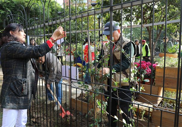 部分路過的居民受到感染,主動(dòng)加入到栽種行列。還有些居民特意帶來家中生病的植物,請(qǐng)園藝師“把脈問診”,現(xiàn)場(chǎng)氣氛活躍。