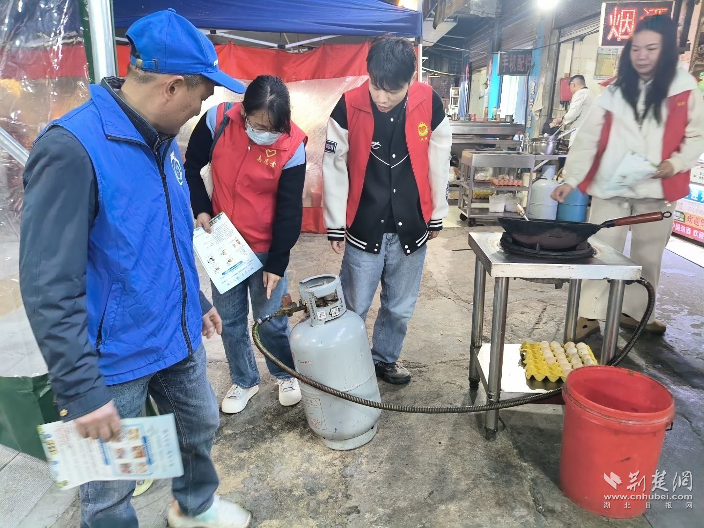 聯(lián)合排查小組深入轄區(qū)商戶指出燃?xì)庀来嬖趩?wèn)題。通訊員供圖