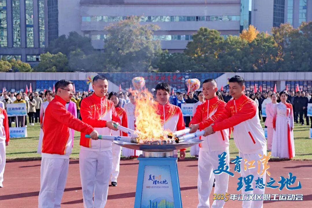 現(xiàn)場(chǎng),“新興之火”“數(shù)智之火”“金融之火”“樞紐之火”“人文之火”五棒火炬依次點(diǎn)亮,張?jiān)?、付俊、邵青、張寶劍、孟廣松等15位勞模代表接力傳遞。燃燒的火焰,照耀著江漢區(qū)在科技創(chuàng)新、數(shù)字化轉(zhuǎn)型、金融強(qiáng)區(qū)、商貿(mào)物流、文商體旅融合等發(fā)展領(lǐng)域堅(jiān)定向前。當(dāng)所有火炬手共同點(diǎn)燃主圣火盆,彩球騰空,全場(chǎng)沸騰,運(yùn)動(dòng)會(huì)正式開(kāi)幕。