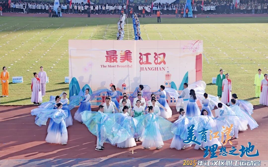 文藝演出環(huán)節(jié)同樣精彩紛呈。開(kāi)場(chǎng)舞《美麗中國(guó)》以熱情舞步禮贊祖國(guó);體育舞蹈《躍動(dòng)未來(lái)》上演力量與美的碰撞;《活力江漢》歌曲串燒中,小歌手彭彥凱與武漢天使童聲合唱團(tuán)帶來(lái)動(dòng)人演唱,職工歌手聯(lián)袂獻(xiàn)唱《江漢四季》《相親相愛(ài)》,引發(fā)全場(chǎng)共鳴;千人工間操展演氣勢(shì)恢宏,全場(chǎng)配合呈現(xiàn)“I?JH”巨型畫(huà)面,將開(kāi)幕式推向高潮。