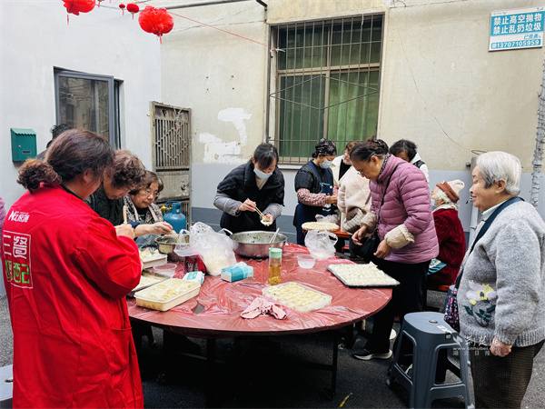 活動最暖環(huán)節(jié),當(dāng)屬跨小區(qū)的鄰里美食互動。工程營小區(qū)鄰里客廳熬制的排骨藕湯香氣撲鼻,九中宿舍小區(qū)鄰里客廳內(nèi),居民正合力包制團圓餃子。兩小區(qū)居民齊聚一堂,熱湯配餃子,一場暖心家宴在嘮家常的溫馨氛圍中開席,詮釋了“左鄰右舍齊歡聚,共筑復(fù)興時光里”的活動主題。