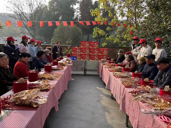 為鍛煉老人動(dòng)手能力與思維敏捷度,活動(dòng)設(shè)趣味手工環(huán)節(jié)。老人們?cè)谏鐓^(qū)工作人員與武大學(xué)生志愿者指導(dǎo)下,將干花、仿真花細(xì)心插進(jìn)裝飾桶?,F(xiàn)場笑聲不斷,老人們舉著作品展示、合影,既收獲成就感,又拉近鄰里距離,傳遞社區(qū)溫情。