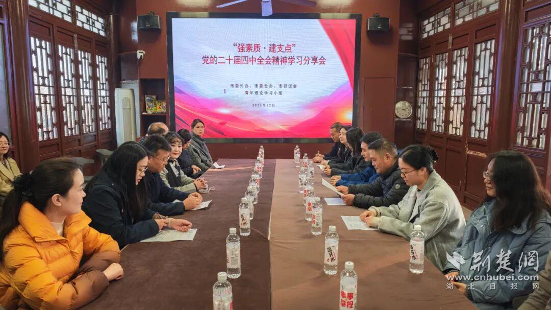 荊楚網(wǎng)(湖北日報(bào)網(wǎng))訊(通訊員 史金鐘)冬日的龜山層林浸染,楚風(fēng)漢韻縈繞書香。12月11日下午,來自武漢市委外辦、市委臺辦、市貿(mào)促會的青年理論學(xué)習(xí)小組在龜山楚才韜奮書院聯(lián)合舉辦“強(qiáng)素質(zhì)·建支點(diǎn)”讀書活動暨黨的二十屆四中全會精神學(xué)習(xí)分享會。30余名青年干部通過實(shí)地調(diào)研、思想碰撞,深學(xué)細(xì)悟全會精神,凝聚服務(wù)“五個(gè)中心”建設(shè)的青春合力。