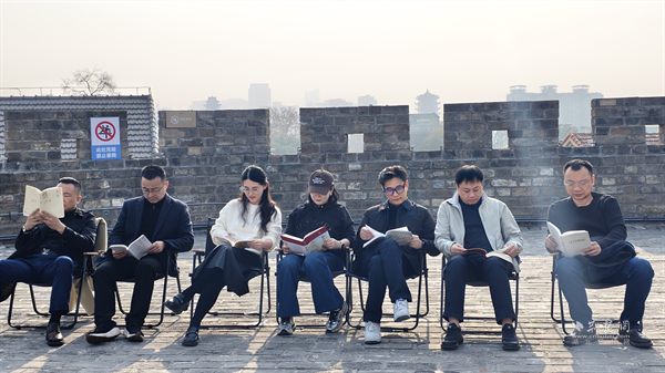 本次讀書會(huì)選址于武昌古城墻,場(chǎng)景設(shè)置頗具深意。一側(cè)是斑駁厚重的明代舊磚,承載著城市悠遠(yuǎn)記憶;另一側(cè)是企業(yè)家手中關(guān)于AI的前沿書卷,指向充滿可能的科技未來。厚重歷史與尖端技術(shù)在此交匯,恰呼應(yīng)了“智啟未來 城載古今”的活動(dòng)主題。