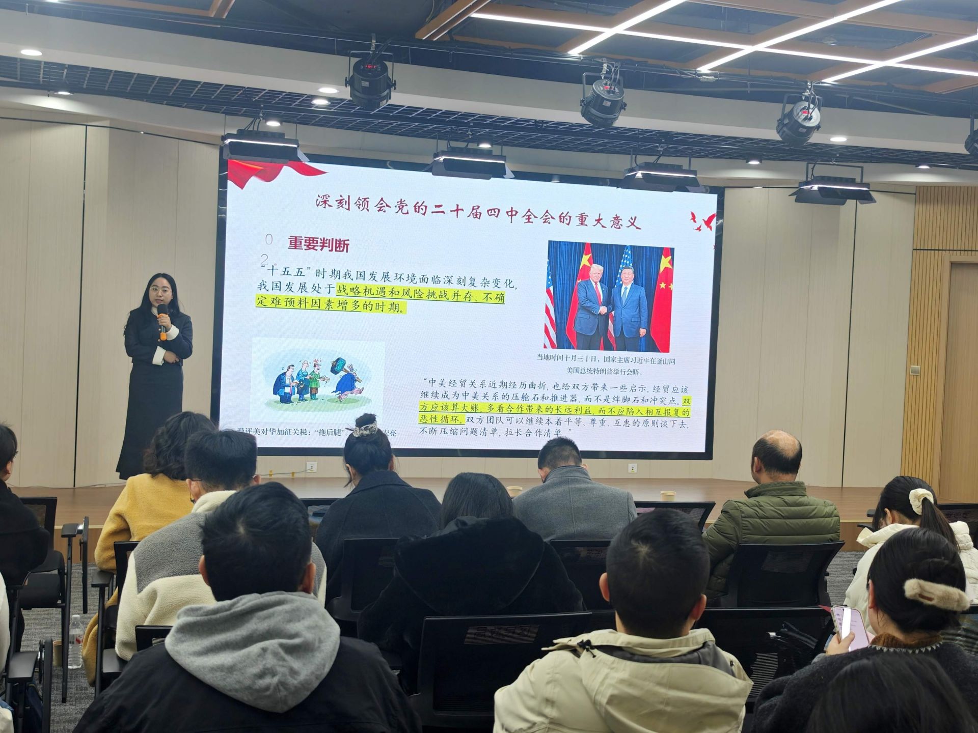 隨后,武漢市委黨校行政管理教研部教師、武漢市“青聲紅語(yǔ)”青年宣講隊(duì)成員吳靜怡,圍繞全會(huì)的重大意義與“十五五”時(shí)期的目標(biāo)任務(wù)作了專題輔導(dǎo)。她勉勵(lì)在場(chǎng)青年將個(gè)人理想融入國(guó)家發(fā)展大局,在科技創(chuàng)新、鄉(xiāng)村振興、基層治理等一線主戰(zhàn)場(chǎng)挺膺擔(dān)當(dāng),以實(shí)干實(shí)績(jī)?yōu)橹袊?guó)式現(xiàn)代化貢獻(xiàn)青春力量。