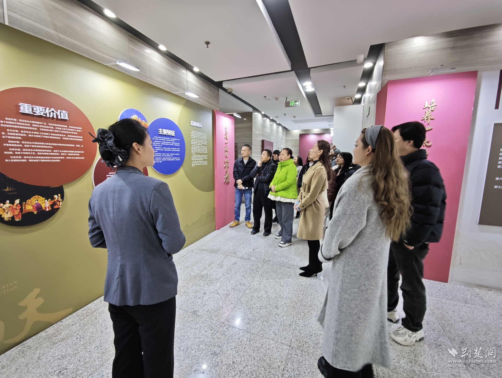 隨后,一行人來到武漢杖頭木偶戲?qū)n}展。在非遺傳承保護(hù)人的講解下,大家近距離了解杖頭木偶的制作工藝、表演技巧及保護(hù)傳承成果。一刀一刻的匠心、一舉一動的神韻,讓成員們直觀感受到傳統(tǒng)藝術(shù)背后的時間厚度與文化力量。