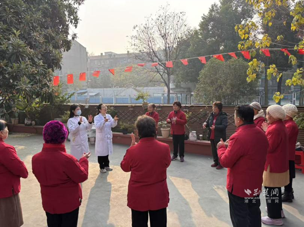 荊楚網(wǎng)(湖北日?qǐng)?bào)網(wǎng))訊(通訊員 熊志芳)“一、二、三、四……手指慢慢張開,不要用力過猛……”近日,武昌區(qū)珞珈山街道武大工學(xué)部老年服務(wù)中心的活動(dòng)室內(nèi),一群高齡老人正跟著節(jié)拍認(rèn)真練習(xí)手指舞,身旁身穿白大褂的醫(yī)護(hù)人員不時(shí)上前調(diào)整動(dòng)作、叮囑要領(lǐng)。這場(chǎng)將康復(fù)訓(xùn)練與新年籌備相結(jié)合的“醫(yī)養(yǎng)結(jié)合”特色活動(dòng),讓老人們?cè)陟`動(dòng)的指尖舞動(dòng)中強(qiáng)健體魄,重拾健康與自信。