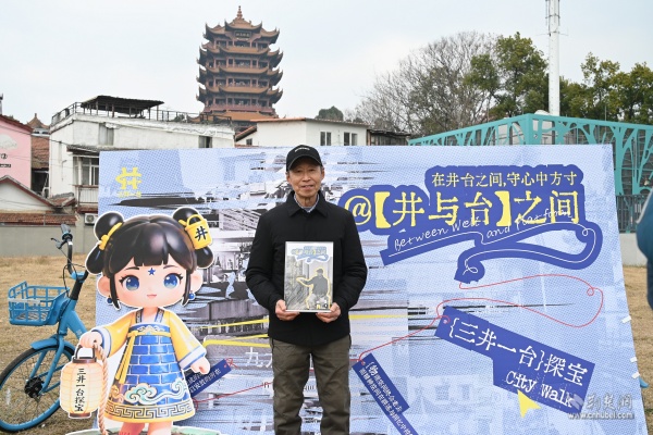快閃活動(dòng)選址社區(qū)黃鶴游園,抬頭即見(jiàn)巍巍黃鶴樓。現(xiàn)場(chǎng),82歲守井人謝邦純老人與社區(qū)工作人員、青年學(xué)子一同講述“三井一臺(tái)”的故事,帶領(lǐng)在場(chǎng)居民穿越時(shí)空,觸摸楚王府遺韻與市井生活記憶。