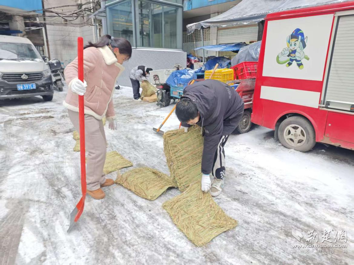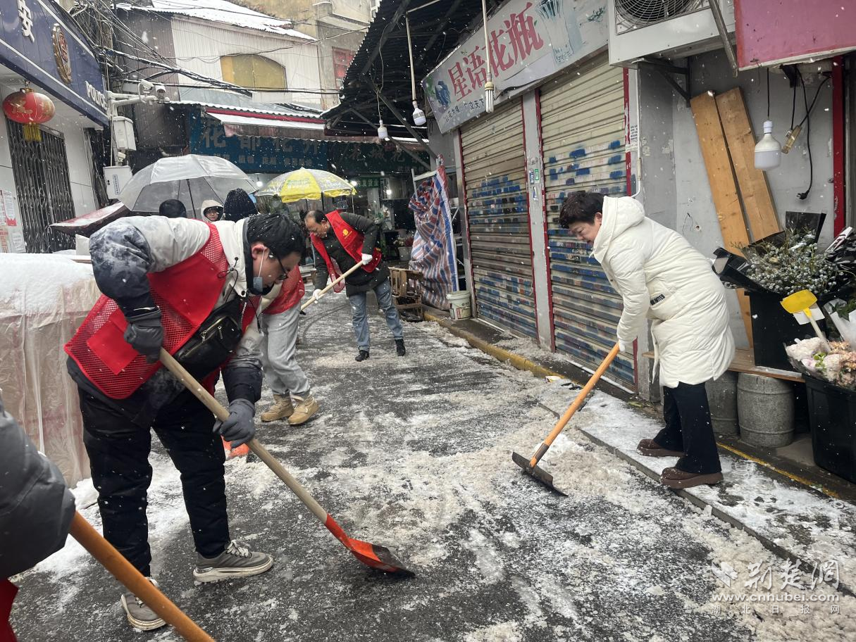 當(dāng)天清晨,清雪人員已在轄區(qū)出行要道、社區(qū)小巷等多個點(diǎn)位同步作業(yè)。街道機(jī)關(guān)干部帶隊(duì)下沉一線,來自轄區(qū)的多支力量陸續(xù)到位。江漢區(qū)科學(xué)技術(shù)協(xié)會、區(qū)湖泊管理所等單位黨員積極參與行動;新華路體育中心、南國中心等單位也主動對接,紛紛派出人員和工具協(xié)同作業(yè)。