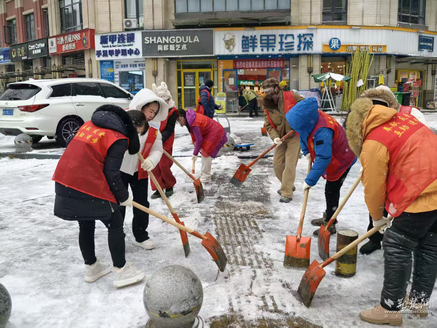 陳家墩社區(qū)則結(jié)合老舊小區(qū)多、坡道多的實際情況,提前明確分片包干責任,將單元門口、背街小巷和易結(jié)冰路段列為重點區(qū)域,組織街道工作人員與社區(qū)黨員志愿者、熱心居民并肩作戰(zhàn)。雪花落滿肩頭、化成水珠,大家卻顧不上拍一拍,鏟一鍬、掃一段、清一處,干勁十足。“看到路面上積雪都清理干凈了,才放下心來。”