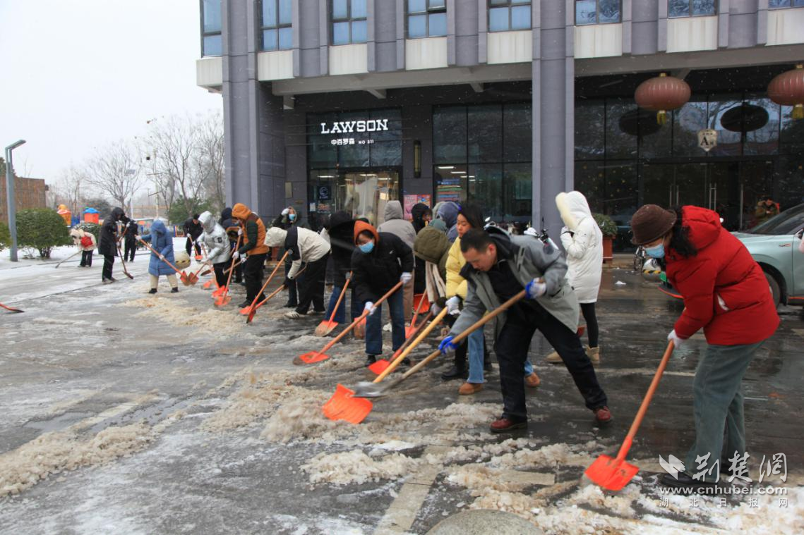 在洪山獅子山社區(qū)、東湖高新區(qū)豹澥街道、漢陽(yáng)區(qū)江堤及四新街道、東湖風(fēng)景區(qū)各村場(chǎng),物業(yè)、居民志愿者在市民在確保安全的前提下,就近參與掃雪鏟冰、鋪設(shè)草墊,對(duì)居民小區(qū)出入口、單元門棟、地下車庫(kù)坡道等關(guān)鍵區(qū)域積雪積冰進(jìn)行清理,對(duì)轄區(qū)幼兒園、小學(xué)、初中等學(xué)校周邊路段開(kāi)展融雪除冰,確保居民出行暢通,共同維護(hù)美麗武漢。