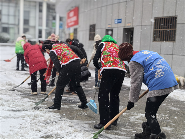 “小衛(wèi),你們鏟雪缺人不?我們都來啦!”一陣爽朗的喊聲從路口傳來,社區(qū)志愿者阿姨們聞訊趕來,迅速分散到廣場各處。大家你一鏟、我一掃,合力將冰雪清運至綠化帶旁,現(xiàn)場干勁十足。