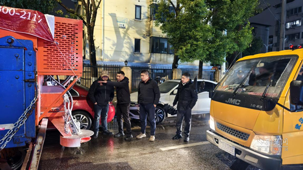 街道嚴(yán)格落實(shí)24小時(shí)應(yīng)急值班制度,一方面組織執(zhí)法隊(duì)員加強(qiáng)路面動(dòng)態(tài)巡查,及時(shí)排查處置積雪壓枝、招牌松動(dòng)等安全隱患;另一方面,環(huán)衛(wèi)隊(duì)伍持續(xù)開展夜間撒鹽防凍和巡查清理作業(yè),防止道路夜間結(jié)冰,確保次日清晨通行安全。