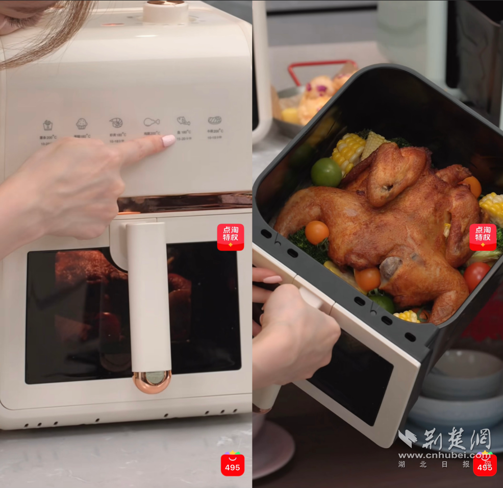 在李佳琦直播間里,觀眾經(jīng)常能看到滿滿一桌由小家電完成的菜肴,“還以為誤點(diǎn)進(jìn)了美食頻道”。主播現(xiàn)場(chǎng)演示用空氣炸鍋15分鐘做出烤紅薯,用蒸煮一體鍋同時(shí)搞定葷菜素菜,用多功能料理機(jī)一鍵蒸魚(yú)。
