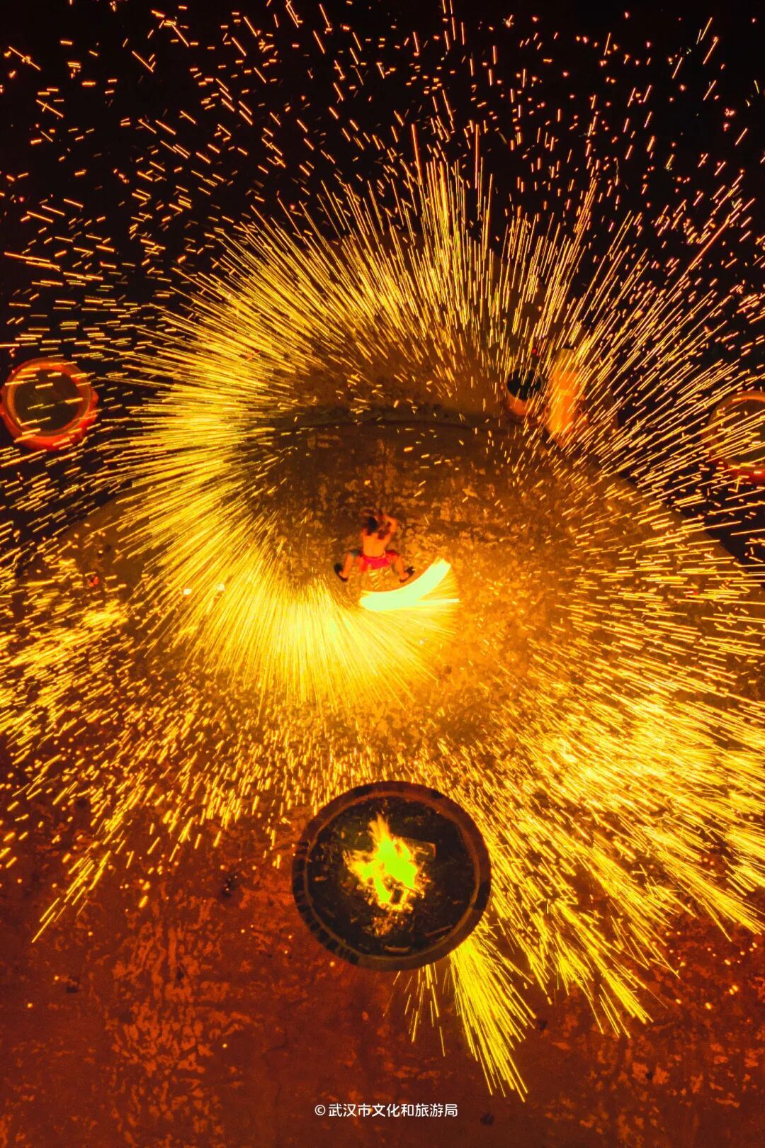 ??木蘭不夜城非遺賀春年以“火”為核心,上演打鐵花、火壺、火刀等震撼視覺的非遺特技演出,點(diǎn)亮夜空,祈愿新年紅紅火火。