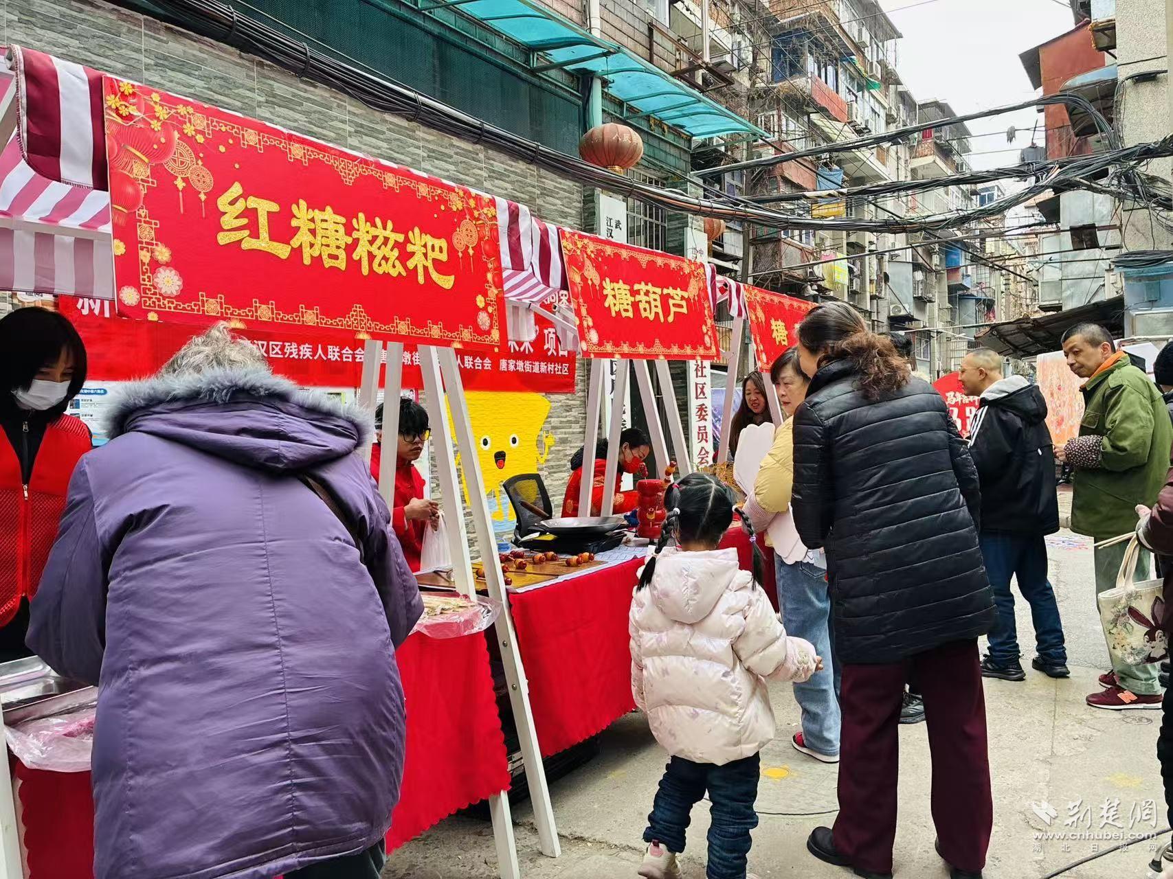 當(dāng)天,新村社區(qū)舉辦“匠心傳承煥新彩 非遺助殘啟未來”項(xiàng)目系列活動(dòng)之一——“非遺游園匯百藝 鄰里同心啟新章”。在江漢區(qū)殘疾人聯(lián)合會和唐家墩街道殘疾人聯(lián)合會的指導(dǎo)下,這場游園會以非遺為紐帶,把文化體驗(yàn)、鄰里互動(dòng)和助殘關(guān)懷融進(jìn)一場“家門口的過年”。