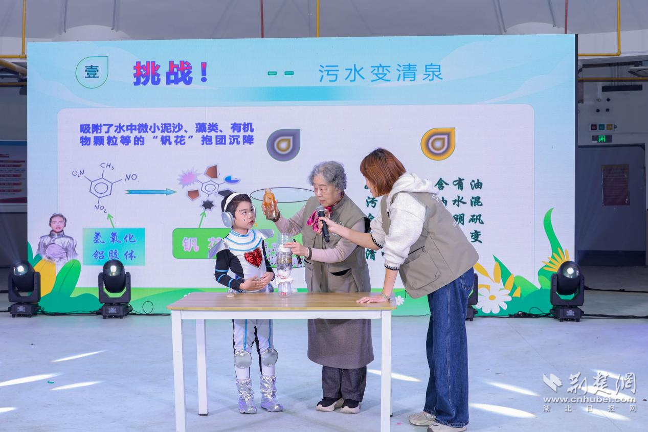 演出結(jié)束后,科普專家熊永紅教授和劉漢生老師開展趣味小論壇,進一步延伸劇中知識點。熊教授現(xiàn)場復(fù)刻“污水變清水”實驗,讓孩子們直觀感受凈水原理;劉老師則結(jié)合江漢湖泊生態(tài)解答“江漢魚是否只屬于江漢區(qū)”的問題,并分享專屬繪本,引導(dǎo)孩子在互動中理解科學(xué)。