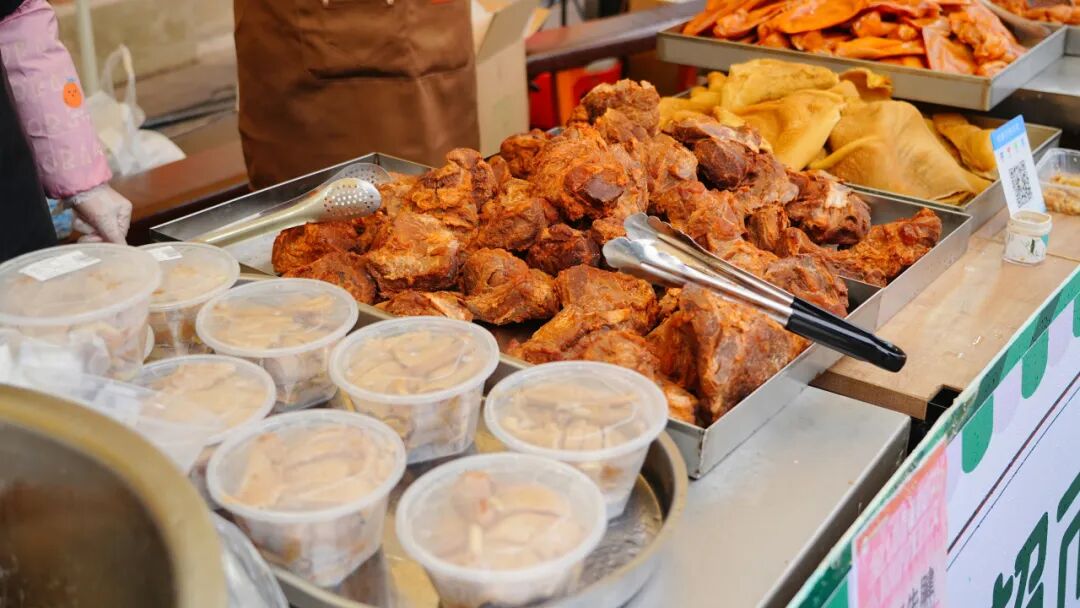 作為活動(dòng)的重要組成部分,特色年貨市集“滿倉(cāng)吉市”匯集了滿滿的煙火氣與本土特色。黃陂三鮮、鴨子煲、清湯鵝等地道美食香氣四溢,喚醒味蕾記憶。本地農(nóng)產(chǎn)品等特色攤位也一字排開,好不熱鬧。朝陽(yáng)村的豆絲攤位前早早排起了長(zhǎng)隊(duì)。朝陽(yáng)村黨支部書記、村委會(huì)主任熊偉介紹:“今天我們準(zhǔn)備了200斤米漿,現(xiàn)場(chǎng)制作近千張豆絲免費(fèi)供游客品嘗,既讓大家嘗到家鄉(xiāng)味,也帶動(dòng)了村里油、土雞、糯米等農(nóng)副產(chǎn)品的銷售?!?/p>
