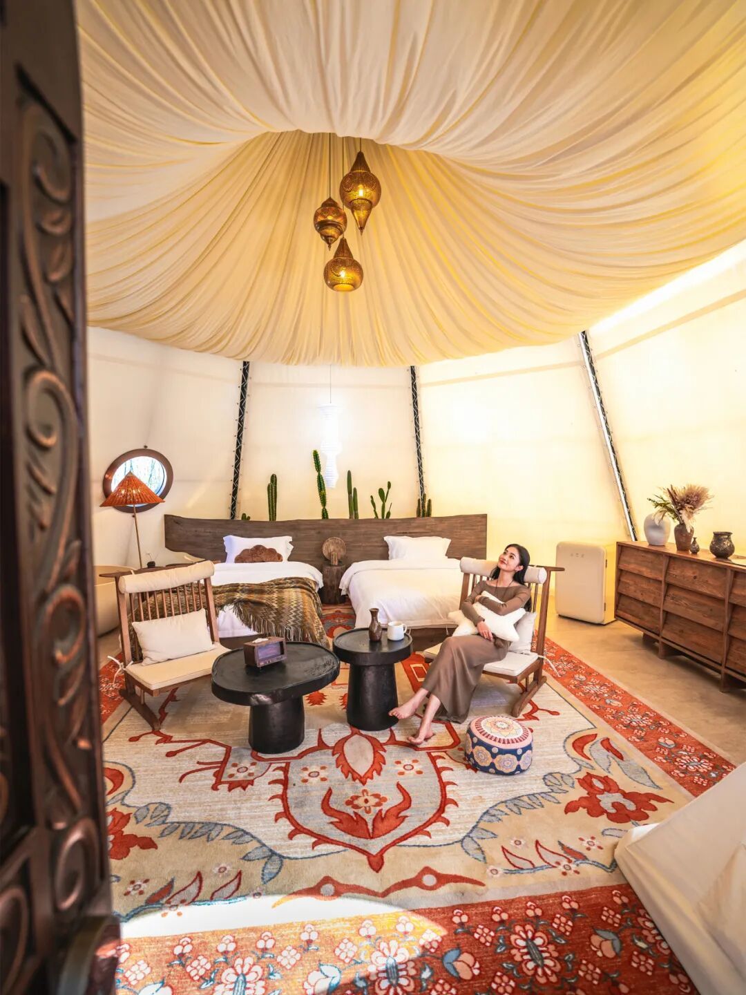 住宿選擇:特色民宿+露營體驗,貼近自然。銀杏山莊、野谷境等民宿兼具舒適與格調(diào),部分房間帶庭院、茶歇區(qū),團(tuán)建后可圍坐茗茶夜談;露營地帳篷住宿沉浸式感受山野夜晚。