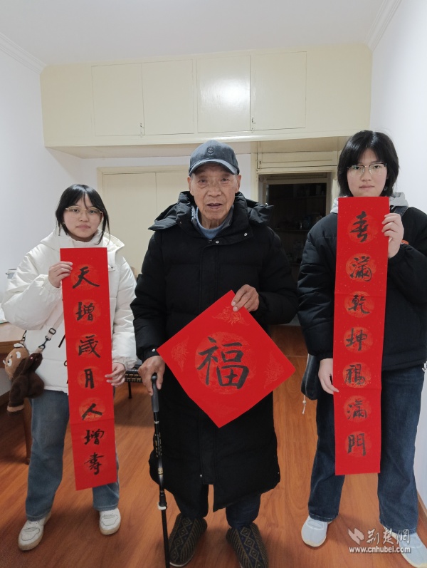 針對社區(qū)高齡、獨居老人,志愿者們開展“敲門行動”,走進“鶴耋安”重點關(guān)愛對象家中。在88歲的李奶奶家門口,志愿者們將一副寫有“福壽安康”的春聯(lián)認真貼好,紅紙金字映亮了老人的笑臉。“你們一來,家里就熱鬧了,這春聯(lián)比買的還暖心!”李奶奶說道。每到一戶,志愿者們都送上手寫春聯(lián)與“?!弊?,幫忙排查水電隱患,陪老人聊家常、憶往昔,用陪伴驅(qū)散冬日的冷清。