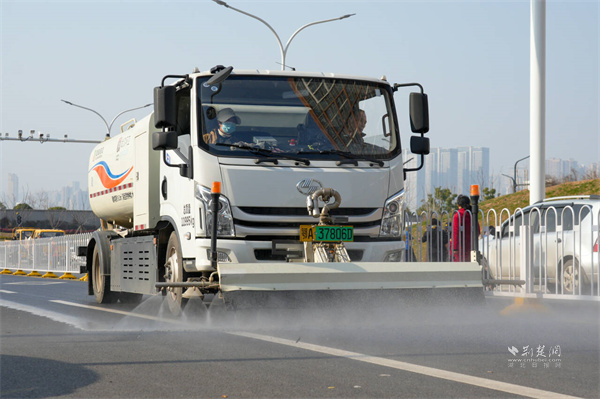 灑水車(chē)進(jìn)行路面清洗作業(yè)。 通訊員供圖