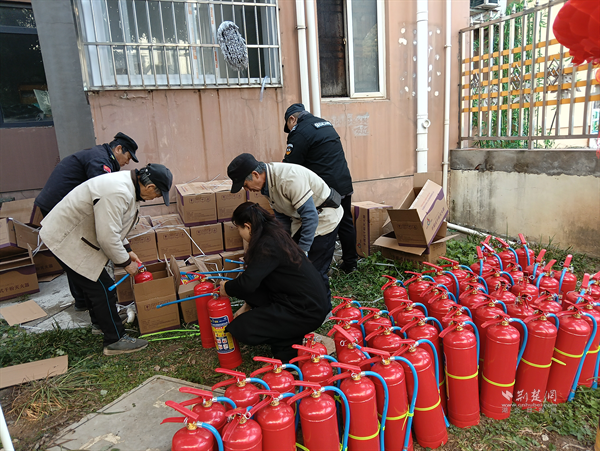 都市桃源博雅苑小區(qū)物業(yè)添置消防設(shè)備。 通訊員供圖
