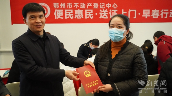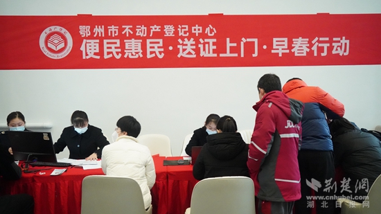 荊楚網(wǎng)(湖北日報網(wǎng))訊(通訊員 周婷)3月22日上午,鄂州市不動產(chǎn)登記中心開展“便民惠民送證上門”活動,將辦證服務窗口延伸到楚天都市鑫園售樓部,現(xiàn)場接受購房群眾申請,現(xiàn)場受理,現(xiàn)場發(fā)證。