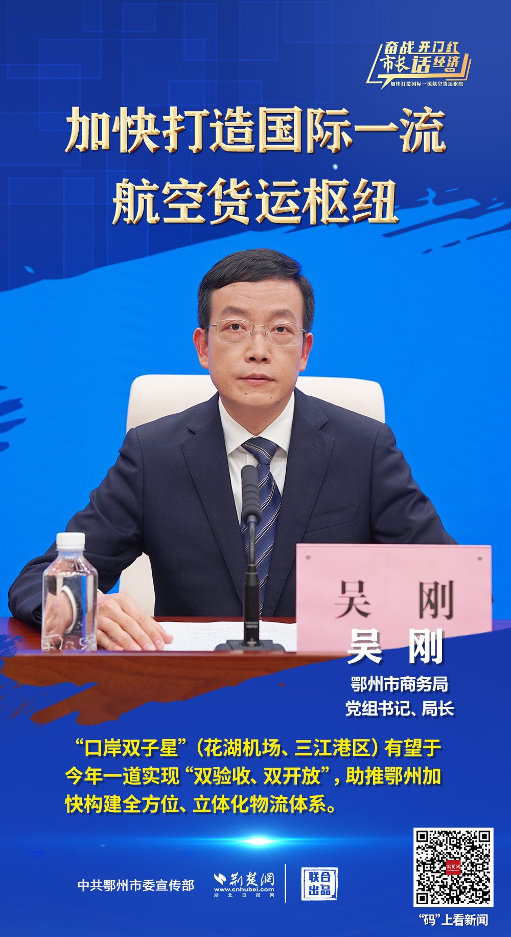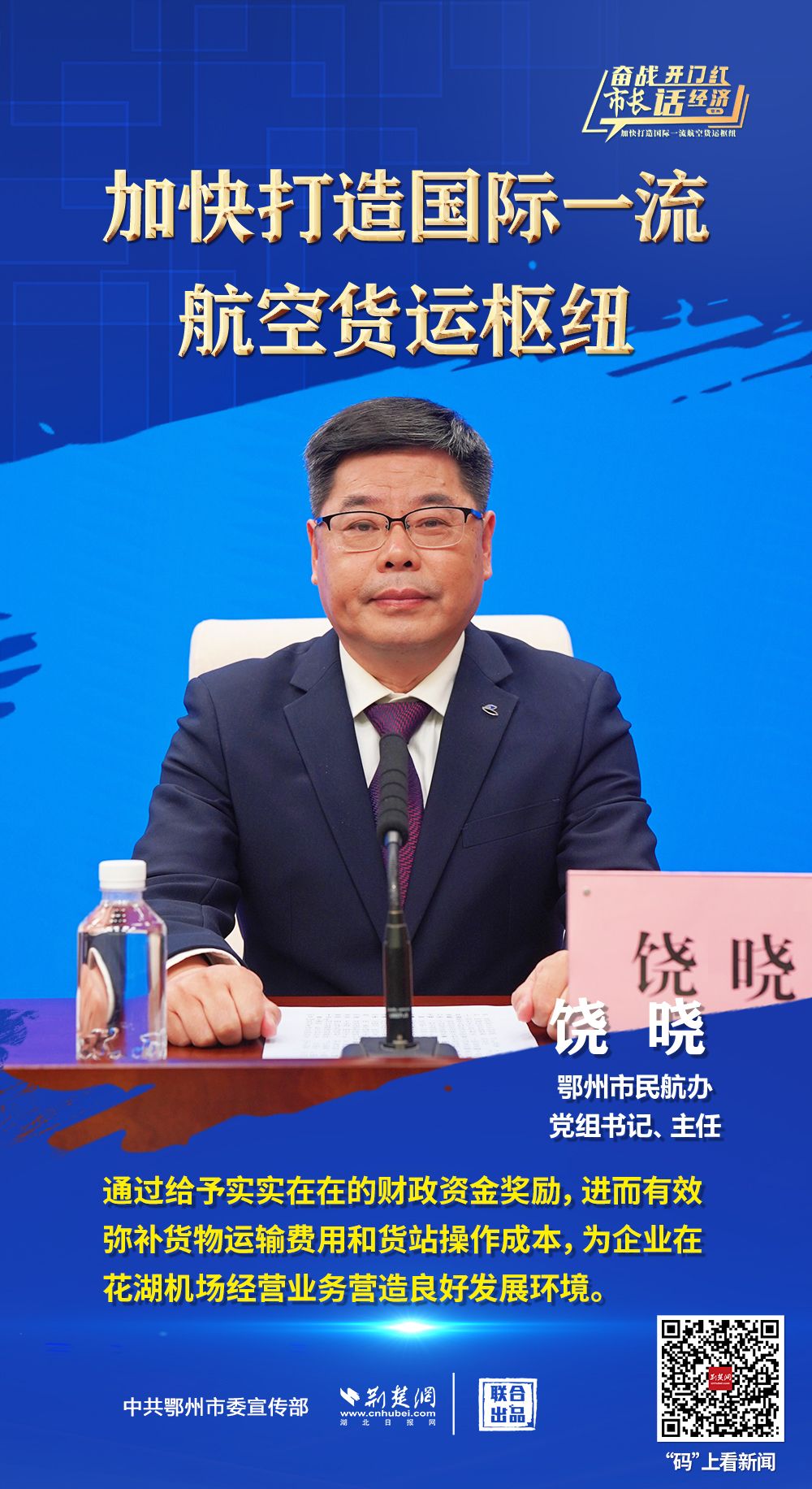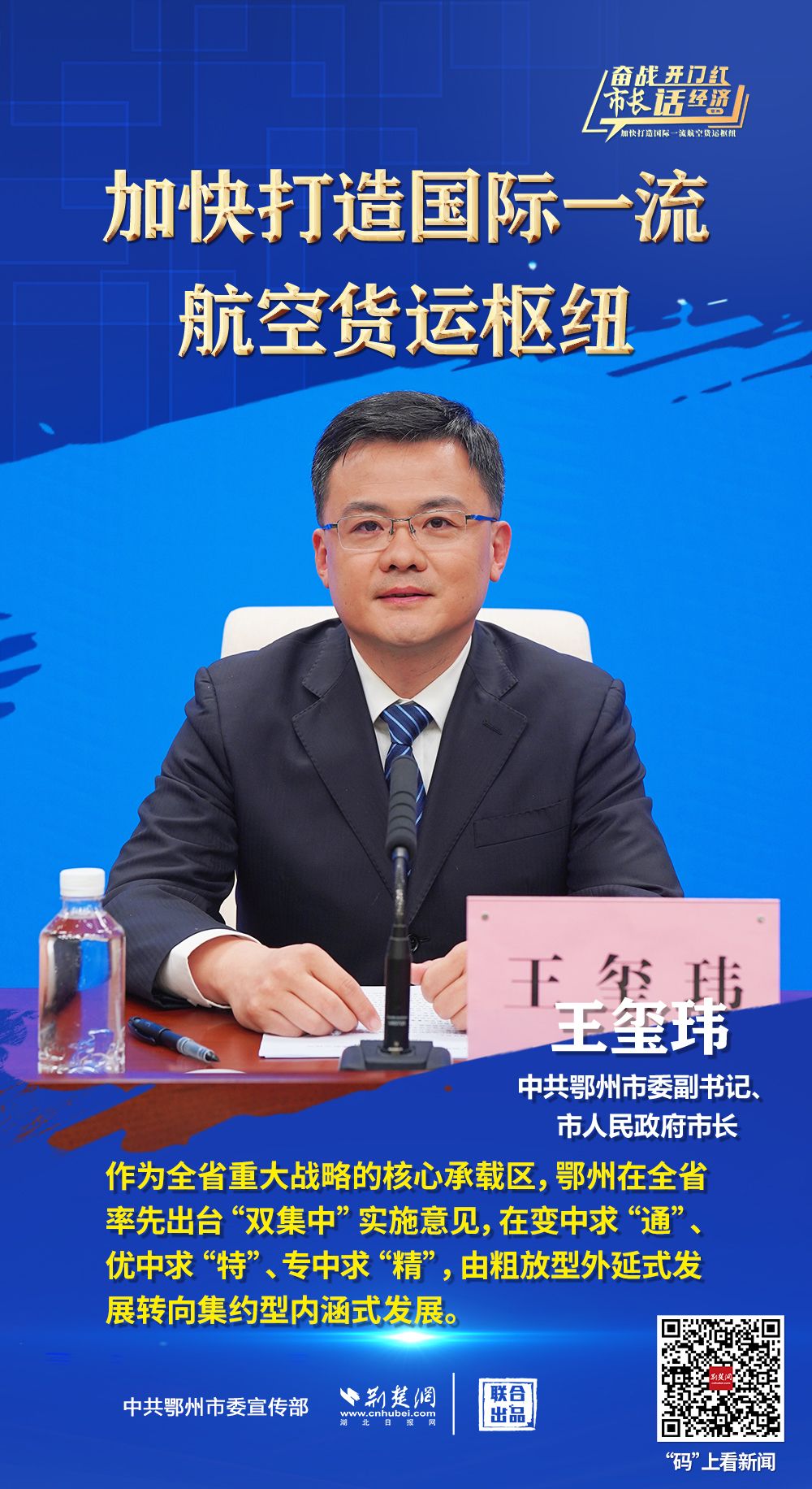 3月26日上午,省政府新聞辦舉行“奮戰(zhàn)開(kāi)門(mén)紅 市長(zhǎng)話經(jīng)濟(jì)”系列新聞發(fā)布會(huì)第十三場(chǎng),介紹“鄂州花湖機(jī)場(chǎng)加快打造國(guó)際一流航空貨運(yùn)樞紐”相關(guān)情況,并回答主流媒體提問(wèn)。