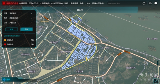 “房屋安全監(jiān)管平臺(tái)對接了數(shù)公基平臺(tái)后,可精確定位到地圖具體樓棟,并顯示房屋基本信息,統(tǒng)計(jì)和管理更便利?!秉S石市住房和城市更新局相關(guān)負(fù)責(zé)人說。