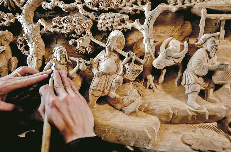 2014年,通山木雕成為了國(guó)家非物質(zhì)文化遺產(chǎn)代表性項(xiàng)目,成希被評(píng)為木雕文化第五代傳承人?!巴ㄉ降哪镜袼囆g(shù)有‘木板上的刺繡’之稱。”成希說(shuō),通山木雕題材十分廣泛,每一個(gè)人物、場(chǎng)景都有一個(gè)故事。他經(jīng)常獨(dú)自到山里古民居里參觀學(xué)習(xí)領(lǐng)悟,“要讓每雕刻的一刀都會(huì)唱歌!”“精雕細(xì)琢,出神入化!”非物質(zhì)文化遺產(chǎn)保護(hù)中心主任謝志兵介紹,2017年,成希在成都第六屆國(guó)際非遺節(jié)上獲得“新生代手藝之星”稱號(hào)。去年,他獲得了第二屆“荊楚工匠”稱號(hào)。
