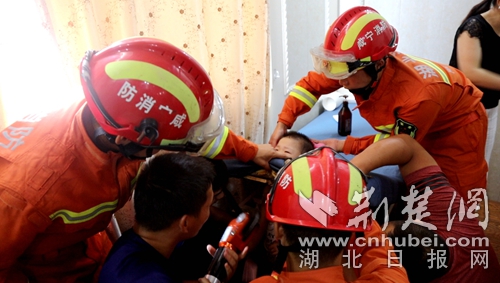 荊楚網(wǎng)消息(通訊員 劉麗娜 朱濤)7月10日15時(shí)09分,湖北省咸寧市消防救援支隊(duì)指揮中心接到報(bào)警稱:通山縣龍鼎麗都美容院2樓小孩頭被卡住,急需救援。接到報(bào)警后,通山縣消防救援中隊(duì)出動(dòng)1輛消防車、6名消防指戰(zhàn)員緊急趕赴現(xiàn)場(chǎng)進(jìn)行處置。