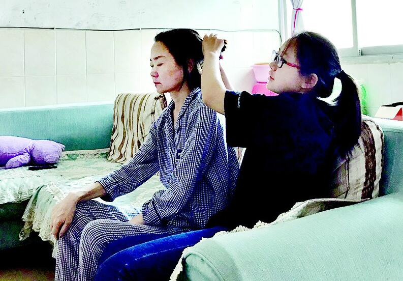 王渝玥原計(jì)劃跟同學(xué)開暑期培訓(xùn)班,這樣可給媽媽掙點(diǎn)藥費(fèi),但沒想到媽媽病情惡化,她只好放棄開班的想法全身心陪護(hù)母親。從沒干過家務(wù)的她,拿起了拖把拖地,學(xué)會(huì)了簡(jiǎn)單做飯,每天幫母親洗澡,扶著母親上下床、上衛(wèi)生間?!吧洗髮W(xué)的日子越來越近,我要好好陪媽媽,她已沒法陪我一起去北京了……”王渝玥說到這里淚如雨下。