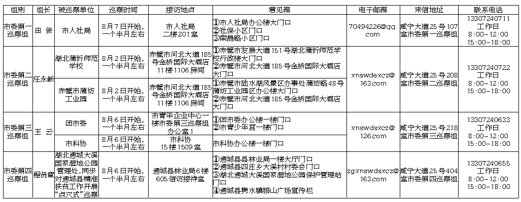 五屆市委第六輪巡察進(jìn)駐情況一覽表