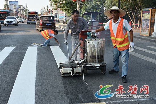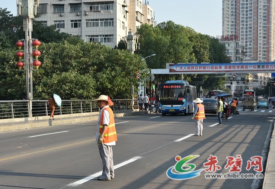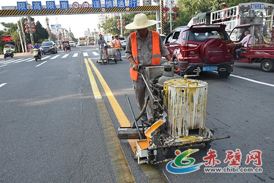 赤壁網(wǎng)消息(記者 聶愛陽)8月6日,記者在一橋路段看到,工人們正在對路面老舊交通標(biāo)線進(jìn)行重新噴涂工作。