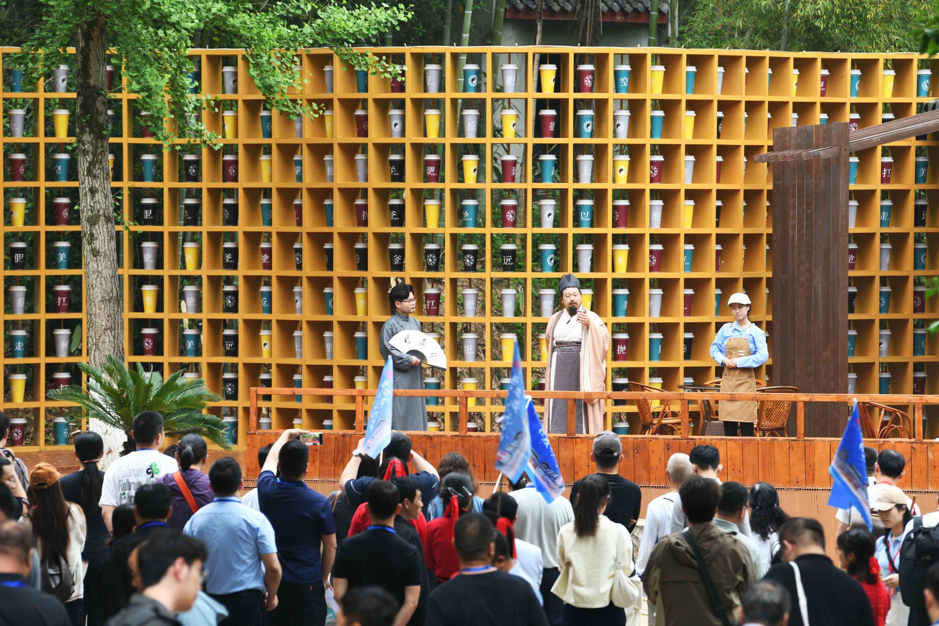 4月26日晚,三國赤壁古戰(zhàn)場景區(qū),《赤壁·借東風(fēng)》實(shí)景演藝劇全球首演。一名“說書人”用現(xiàn)代人的口吻,串起一部三國與現(xiàn)代的穿越?。何枧_(tái)上,演員、道具、光影重現(xiàn)“草船借箭”“苦肉計(jì)”“空城計(jì)”等歷史典故;看臺(tái)上,游客化身將士,隨劇情節(jié)奏拍打赤壁非遺——腳盆鼓(相傳為孫劉聯(lián)軍赤壁之戰(zhàn)鼓舞士氣的樂器)……現(xiàn)場,觀眾與演員深度融合,沉浸式體驗(yàn)三國英雄氣概,仿佛一場跨越千年的對話。